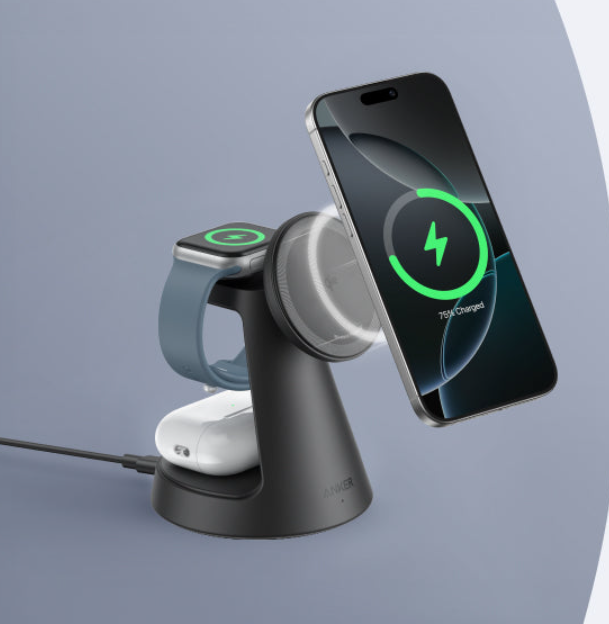 Another key trend is the rise of all-in-one charging stations. Instead of charging one device at a time, users now expect a single wireless charger to power their phone, earbuds, and smartwatch simultaneously. Compact 3-in-1 Qi charging docks are becoming popular for desks and nightstands, reducing cable clutter and simplifying daily charging routines. Anker’s multi-device wireless charging stations reflect this shift toward convenience and organized charging setups.